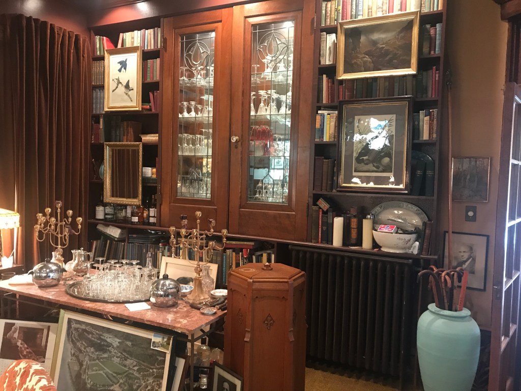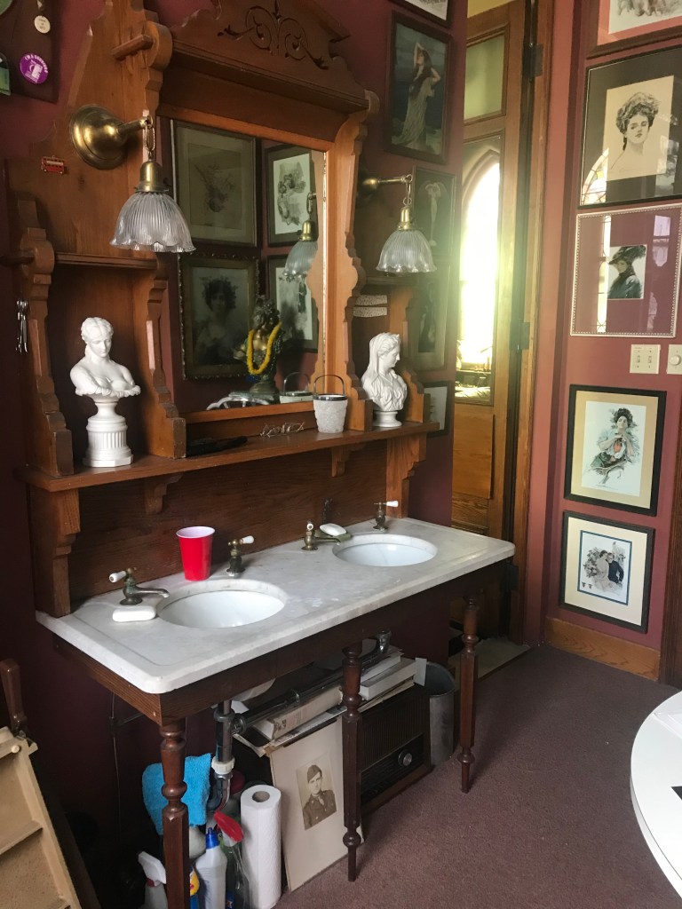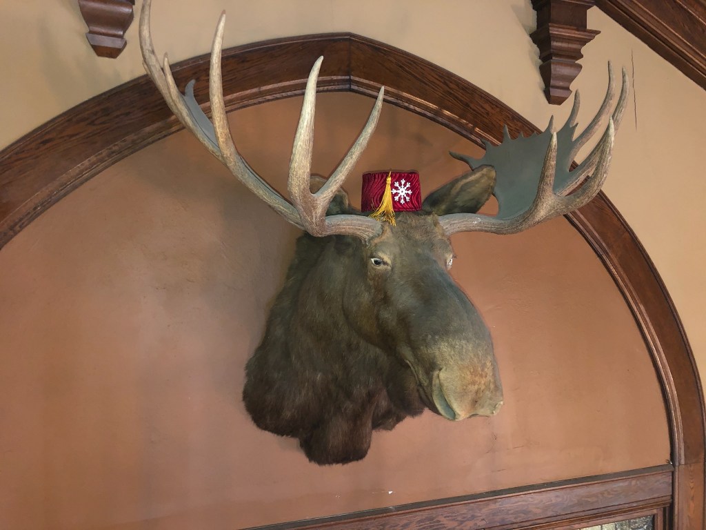Leave it to Tim. Of anything in the building (and there were thousands of amazing antiques) Tim decided the moose head had to stay. There was a Bison head over the fireplace ( I’m a Bucknell grad as is our daughter, and it would have been cool to have keep that) but Tim picked the moose. Eventually the moose head was literally included in the contract to buy the building. Theodore, as he is now known, has developed quite a following. I choose not to watch as Tim climbs a very tall ladder and puts different hats on him to celebrate various holidays and special occasions.