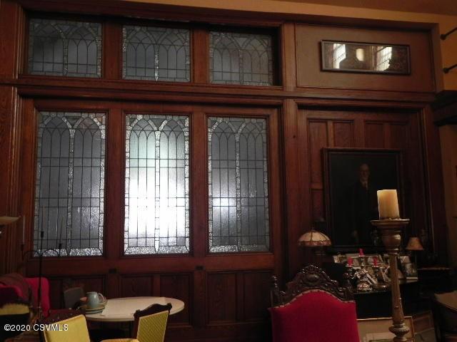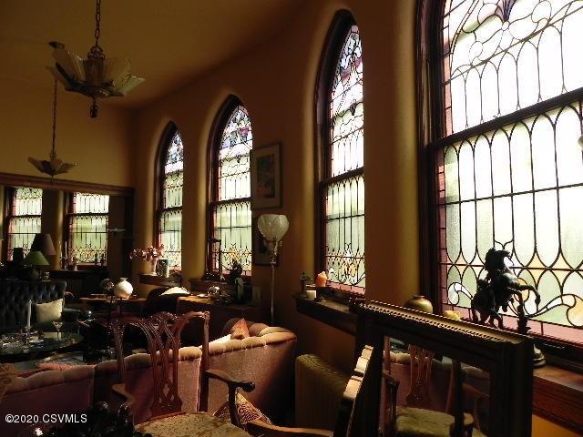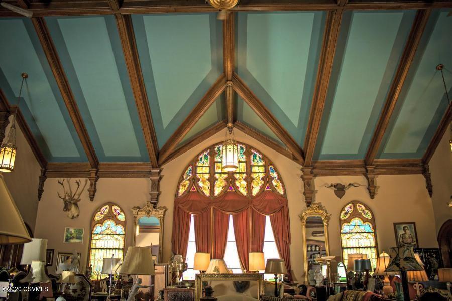 The church wanted to keep several of the stained glass windows that showed religious scenes, and that was appropriate. Those stained glass panels are now on display at St Johns United Church of Christ on Buffalo Road outside of Lewisburg, backlit, and they are beautiful. Jim Clark replaced those glass pieces with a pretty opaque glass.