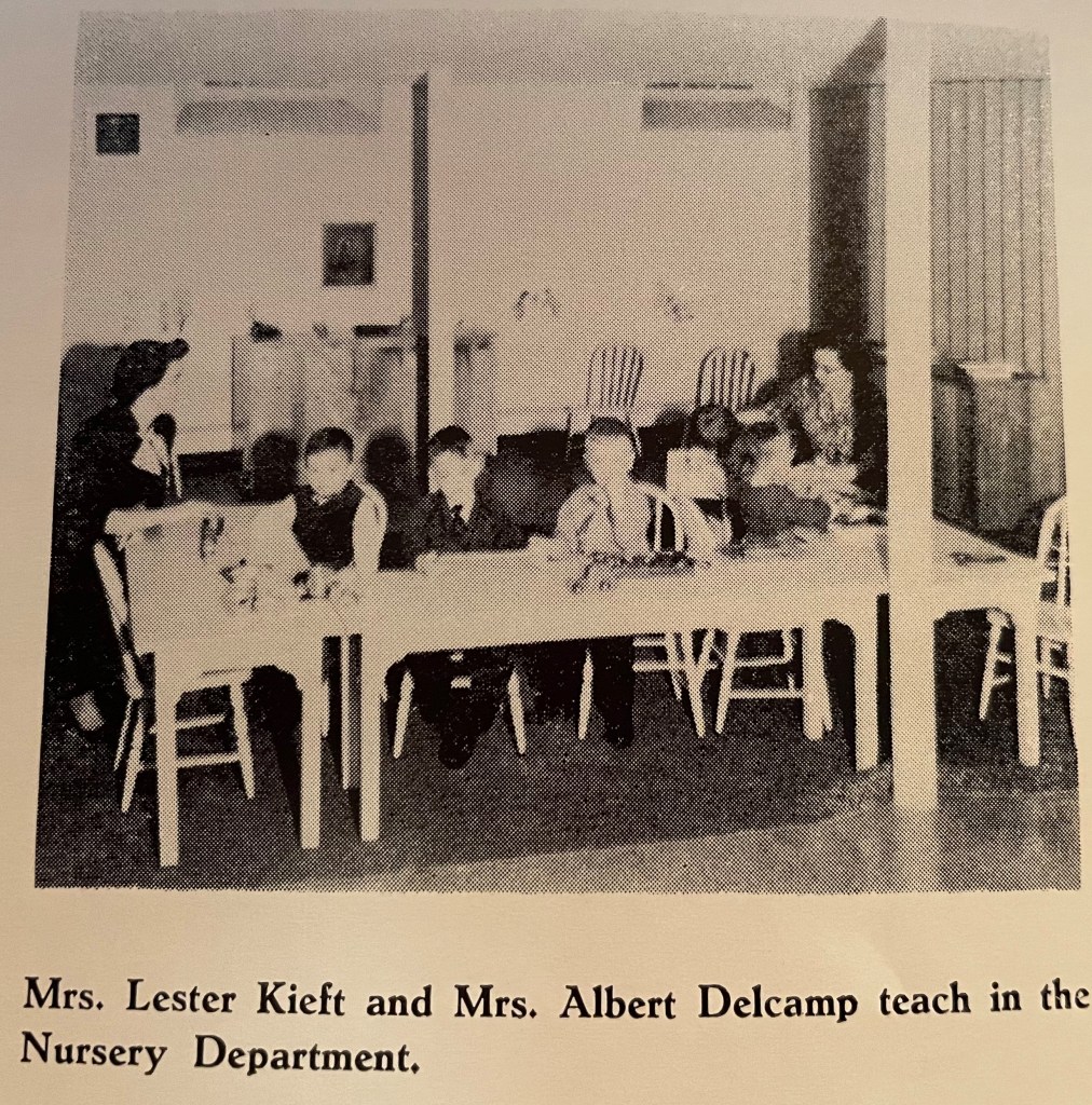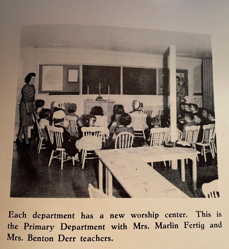 Of course, the congregation started running out of space again. Much work was done on the basement in the 1950’s which included digging out enough dirt so that the entire area was lowered by 15″. Now there were loads of Sunday school classes happening there!