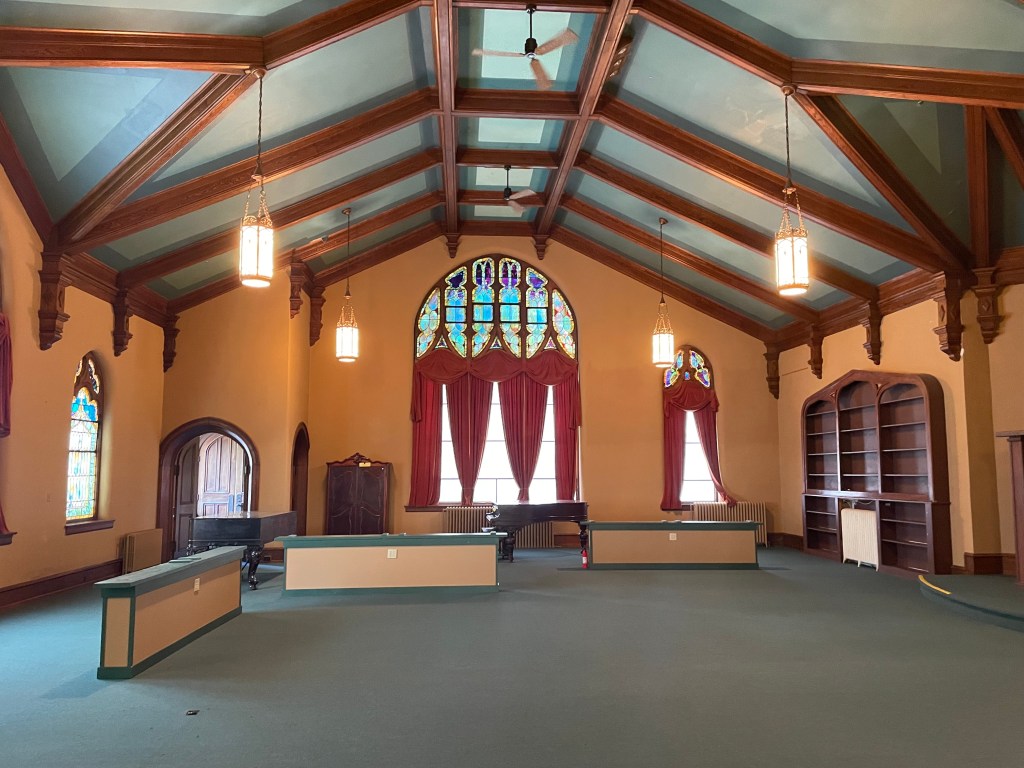 We have done many projects in the last several yers but probably the biggest was having a local company, Bucks, install A/C throughout. There had been a couple splits already installed, one in our daughter’s room (formerly the Pastor’s office and now the guest room). The other was in the Library area, but they were inadequate to manage the building. Now, with A/C installed throughout we can keep it comfortable everywhere. We typically don’t worry too much about cooling or heating the Great Hall/ former Sanctuary unless we are hosting people gathering there, so the cost of keeping things cool is not exorbitant.
