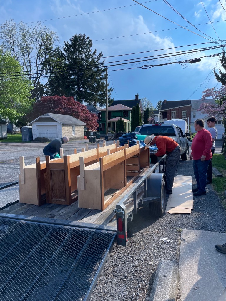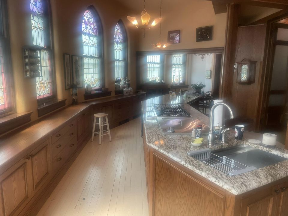 Long story shorter, we put in an offer to purchase the church in April 2021 and gave the owner six months before closing so he would have time to sell/auction/move to a new place the thousands of antiques here. We started making plans which included building a kitchen in the back circle of gorgeous windows … and in doing those measurements in the warmer month of June realized we would need to do some substantial work installing a/c throughout the building. It gets intolerably hot in here in the summer months.