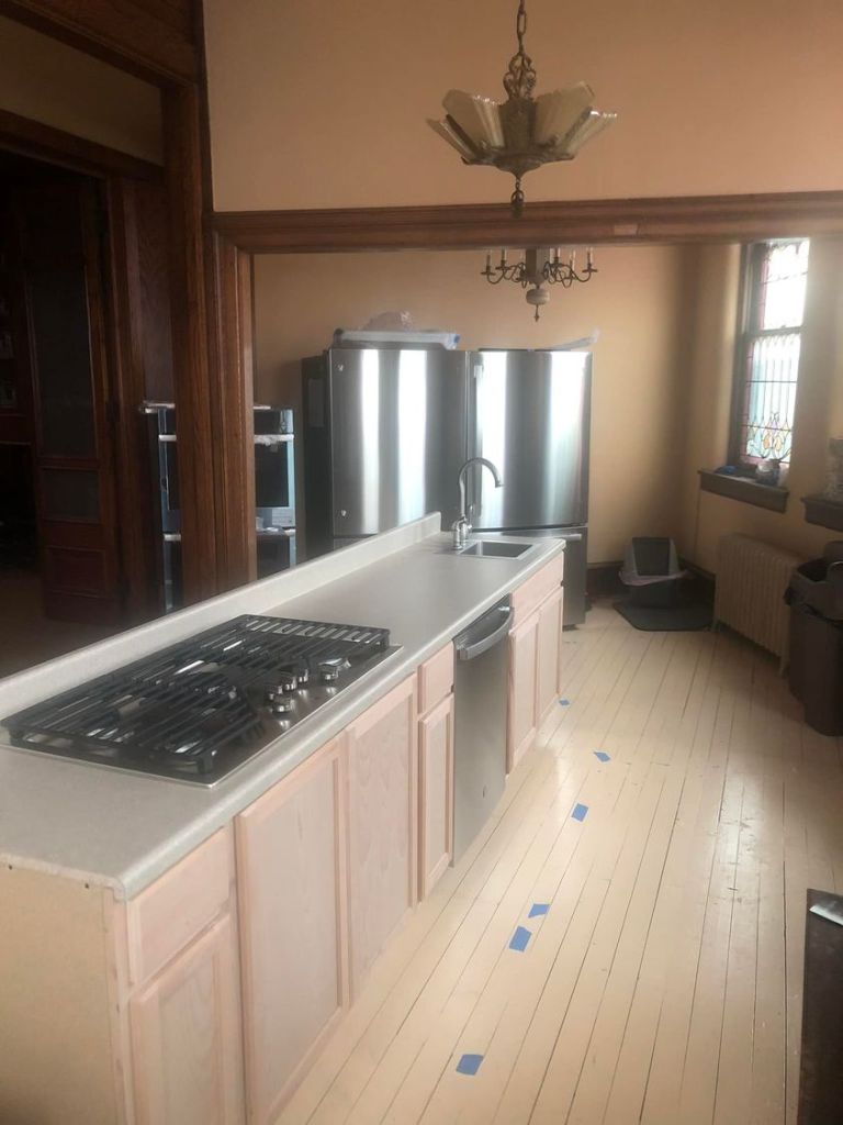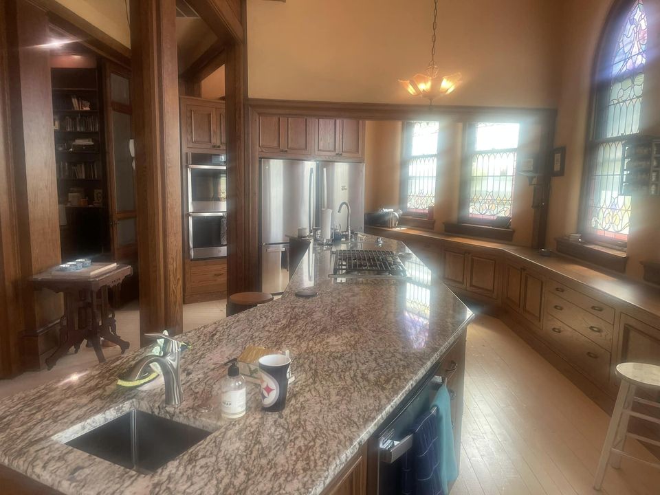 We had moved our family with six young children to Lewisburg PA in 2011 to provide a better place for them to grow up. Lewisburg is the Norman Rockwell painting come to life and we have never had a second thought about uprooting all our lives and moving everyone here . We wanted to live downtown but there are not many homes that can accommodate a family of eight, so we bought an older duplex in 2010 and Timothy moved out to PA a year before the rest of us so he could set up his electronic controls business, and he also started gutting the house we bought to turn it into a charming home for our family with enough bedrooms and bathrooms and showers for all of our six children. He took the center wall out of the duplex, brought the front doors together, joined the kitchens in the back, created a new staircase, and importantly installed new plumbing, new electrical, spray foam insulation, A/C, windows, pretty much rebuilt this lovely home from the inside out while maintaining the charm of this classic building.