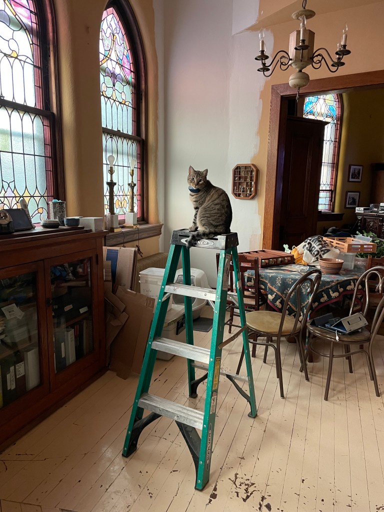 It was justification enough for us to put in an offer for St. John’s church in April of 2021. We envisioned the enormous Christmas tree we could place at the gorgeous fireplace, space for loads of family opening gifts by the fire, Thanksgiving dinner under the fabulous chandelier over the round table that seated at least a dozen and a half and space in that room for another table of another dozen friends and family. We saw weddings in our future, we could host Showers and other parties in this glorious space. As heart breaking as it was to sell our beautiful St. George Street house that we had invested so much heart and effort into, we didn’t need six bedrooms and five bathrooms any more, what we needed was space to bring everyone home for family celebrations. Tim jokingly refers to our move as “downsizing”, six bedrooms down to one.