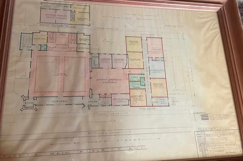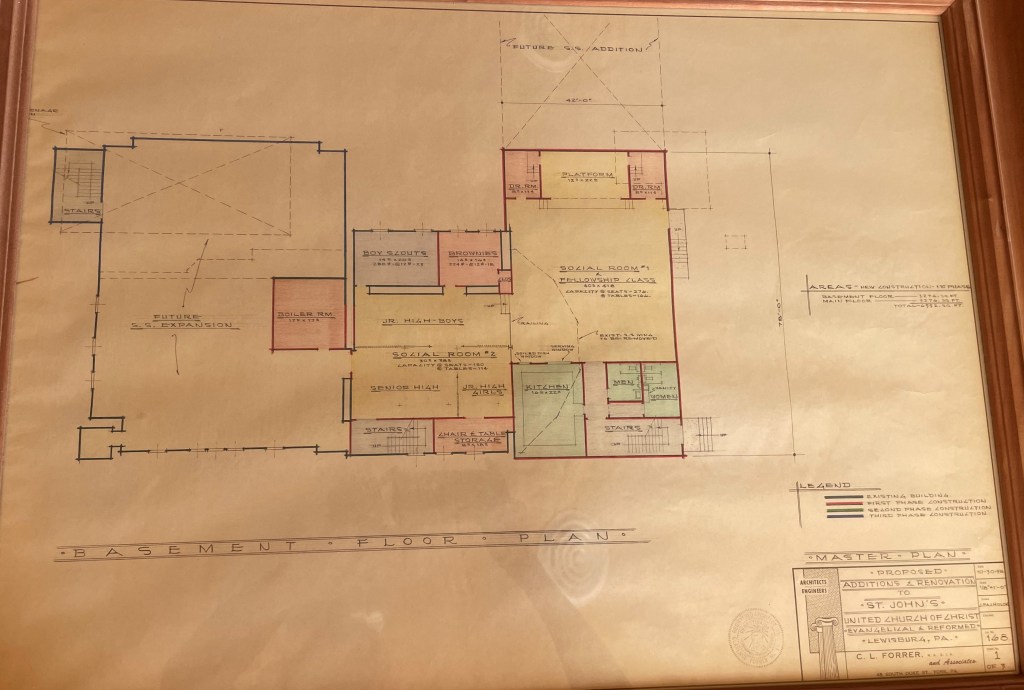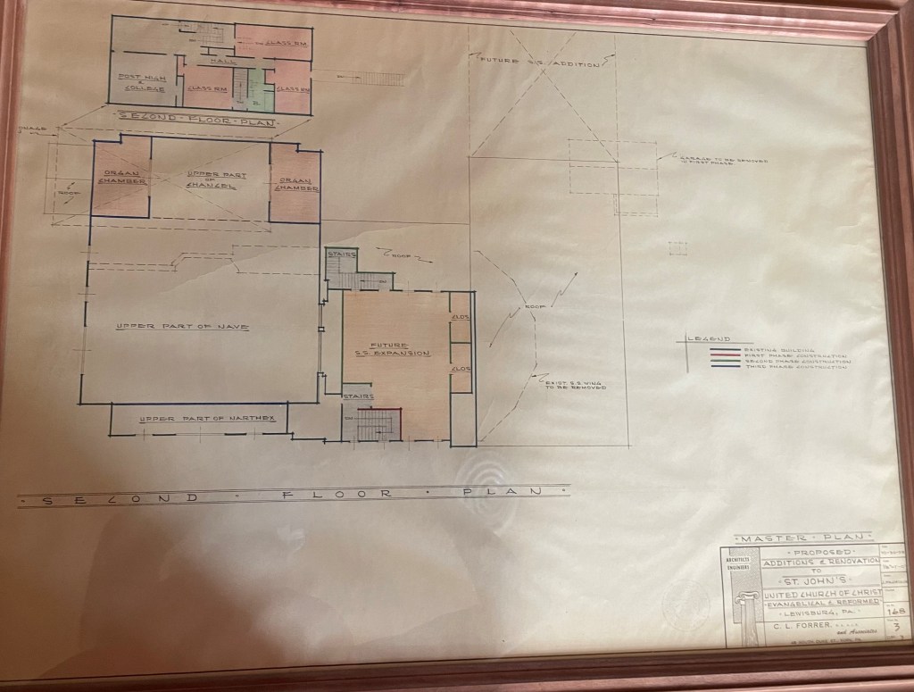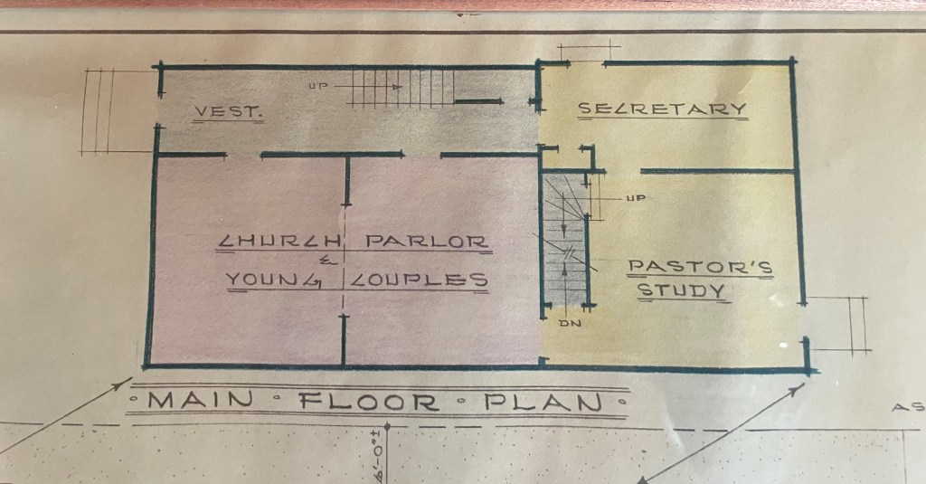 We inherited the architect drawings from 1951 that show that the church needed to expand their space and thought about putting a new building in the church parking lot.