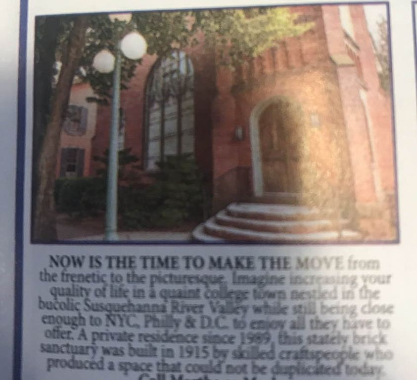 It all started with this advertisement of a church for sale in downtown Lewisburg.