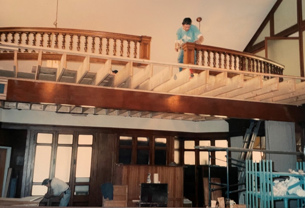 In building the loft in the middle room, the bannister that had circled the choir was installed to round that area.